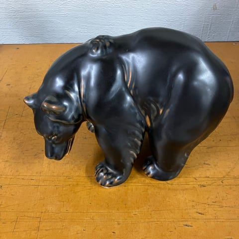 Royal Copenhagen 21152 bjørn og slange 1 sort 25 cm høj design Knud Kyhn med årstal 1952 desværre er den repareret ved slangens hoved, er pænt lavet. Prisen er sat derefter.