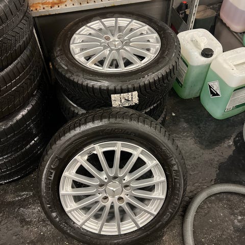 Brugte Michelin vinterdæk i god stand med Mercedes alufælge.