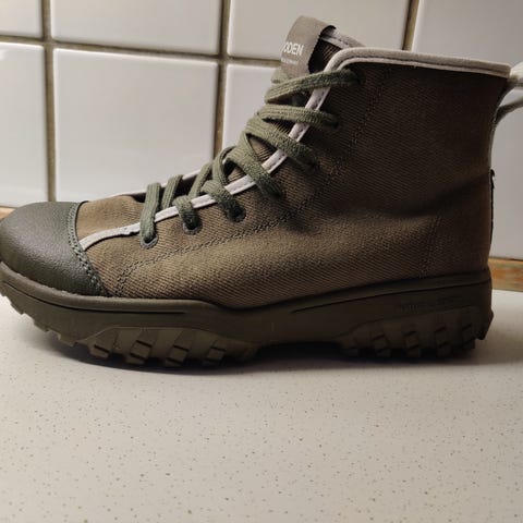 Super flot varm og vandtæt vandreinspireret støvle, dame, str. 39, med varmt foer, karakteristisk track-sål for et edgy look. Tekstil, læder, med smukke detaljer af fiskeskind. Vandtætte refleks detaljer. Woden cork Airflow indersål, ydersål Natural Soft Technology. Super komfort. Kun prøvet 1 gang så står som nye.