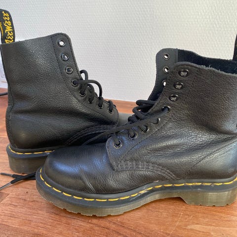 Dr. Martens Støvler i sort læder, størrelse 39 / US m str 7, Støvlerne har snørelukning og en slidstærk gummisål. Indersålen kan tages ud. Velegnet til daglig brug og udendørs aktiviteter..