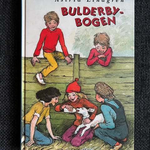 Astrid Lindgren Forår i Bulderby Bog. Bogen indeholder illustrerede sider med historier om børn i Bulderby. Teksten og illustrationerne er på dansk.