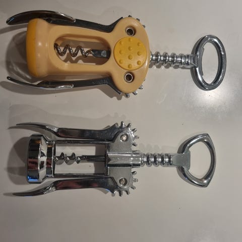 Sæt af proptrækker og ølåbner i aluminium med gummiringe for et godt greb.