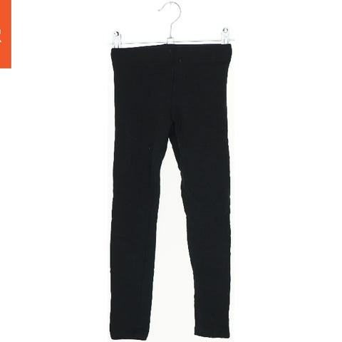 Et par blå leggings til børn. De har elastik i taljen og rib ved anklerne. Stoffet har en let struktur, hvilket giver en diskret tekstur.