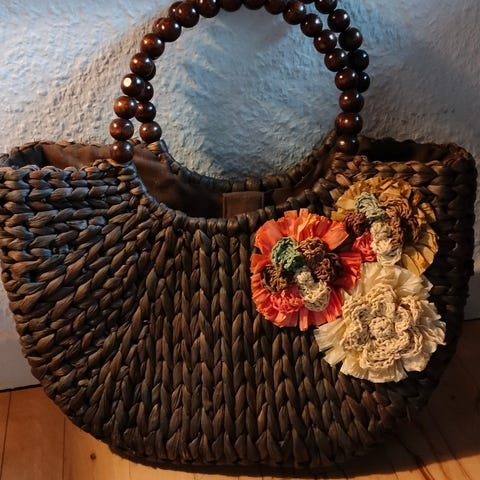 Håndvævet rattan taske Tasken har en rektangulær form og en naturlig beige farve. Indvendigt foret med stof. Egnet til daglig brug som en let og rummelig taske.