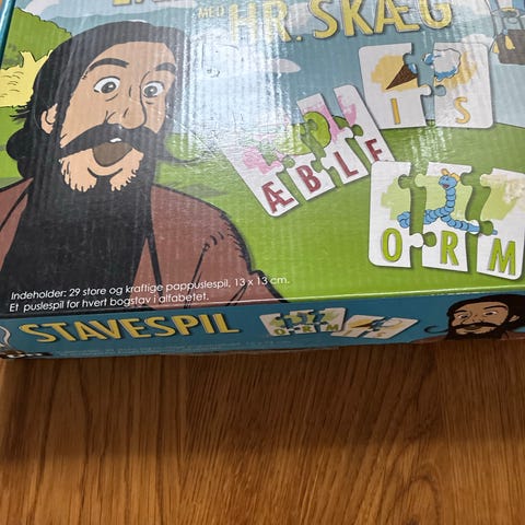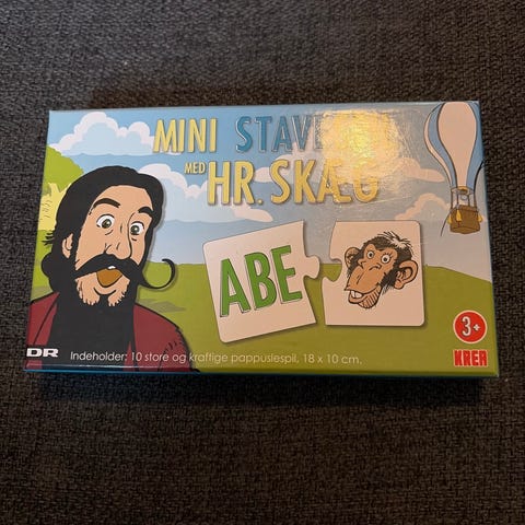 Hr Skæg Mini Stavespil er et børnespil designet til børn fra 3 år og opefter. Spillet indeholder puslespilsbrikker, der hjælper med at lære stavning og ordgenkendelse.