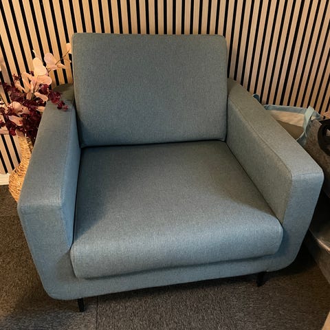 Dejlig at sidde i , drejefod og kan lænes bagover.