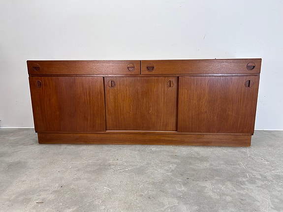 Dansk møbelarkitekt skænk/bogreol i fineret teak med massive greb .