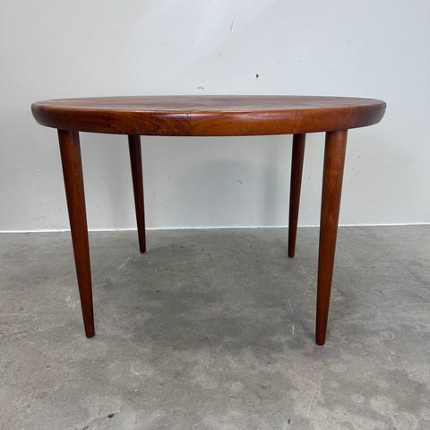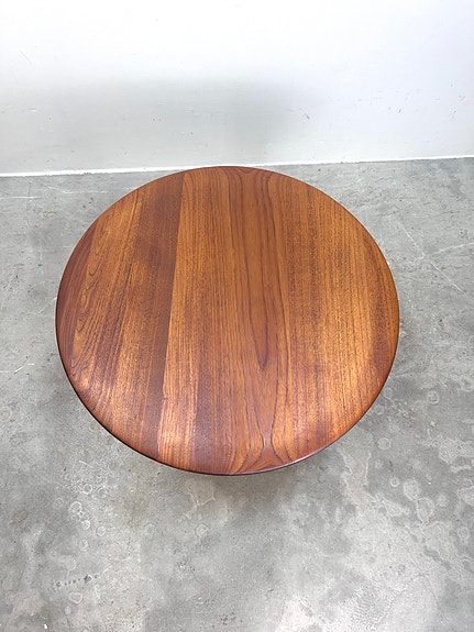 Ejvind a johannson rundt Sofabord med vendbar plade i fineret teak og sort formicia. massiv kehlet kantliste og stel af massivt teak