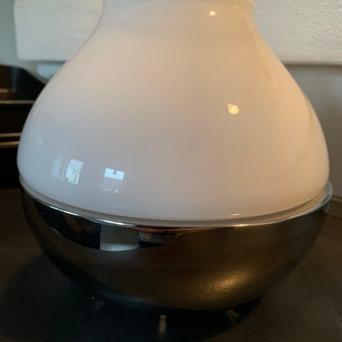 Bordlampe, Georg Jensen, rustfri stål og koksgrådamask skærm