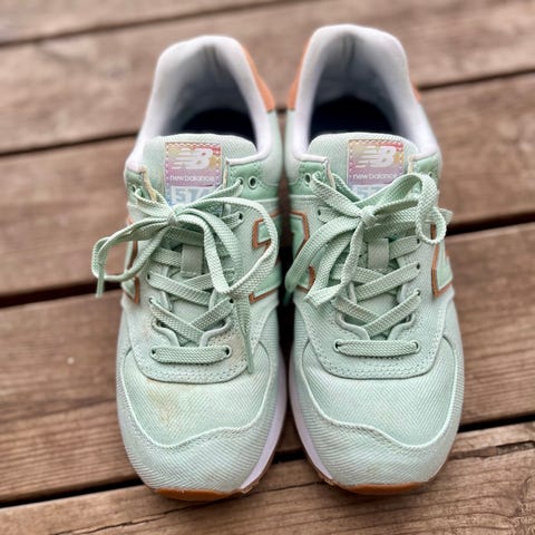 New Balance Sneakers i størrelse 40,5. Farven er beige med mesh-materiale, hvilket giver åndbarhed.