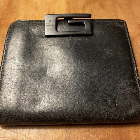 Helt unik lille Gucci pung. Jeg vil mene det er for samlere og ægte elskere af Gucci da pungen er slidt kraftigt. Den har Gucci logo inden i som er dateret til 1970’erne samt originalt certifikat med serienummer på bagsiden. Udenpå det klassiske GG look, indeni er i læder.