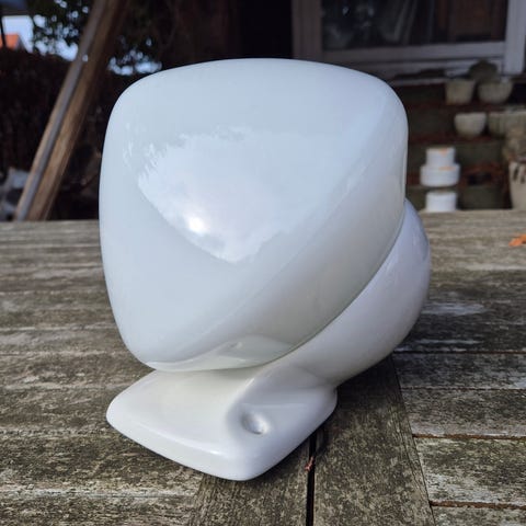 Den store, model 6015, er designet af Gunnar Nylund for Ifö – sjælden model. Den er stor; se størrelsen ift den klassiske model 6035. SMUK farve med mørke striber i porcelænsdelen. Kæmpe opalglas i fakkelform. Den er i PERFEKT stand. Det oprindelige vægudtag følger med, men den kan sættes mere enkelt op med et indvendigt beslag.