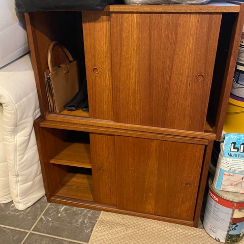 Uimodståelig flotte opbevaringsreoler i massiv teaktræ og med smukke fingertappede detaljer. Kan stå eller hænges op på væggen. Brug dem til din yndlingsvin, som barskab, magasinholder eller som et lækkert indslag på badeværelset til dine håndklæder mm. Helt utroligt flotte og unikke og super rummelige. Brug dem alene eller sammen. Måler l. 46 cm x d. 12 cm x h. 28 cm. Sælges samlet for kun 1.800,-