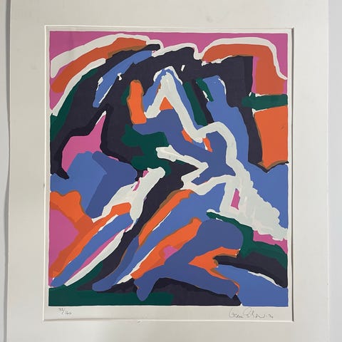 Nummereret og signeret af kunstneren, udgave 5/25 og 6/50. Fremstillet i 1973. Indrammet med mørk egetræsramme og med UV museumsglas. Et rigtig fint som kunstværk.