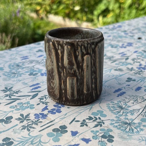 Flot lysebrun Johgus keramik vase. Højde 19 cm.