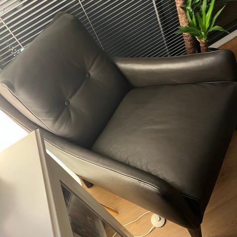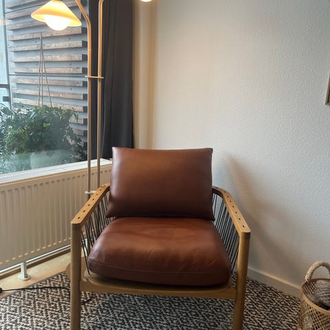 Super fed læder lænestol fra Sofacompany i brunt læder og med træben