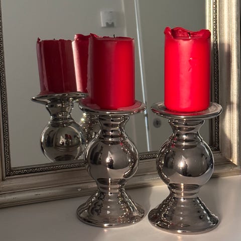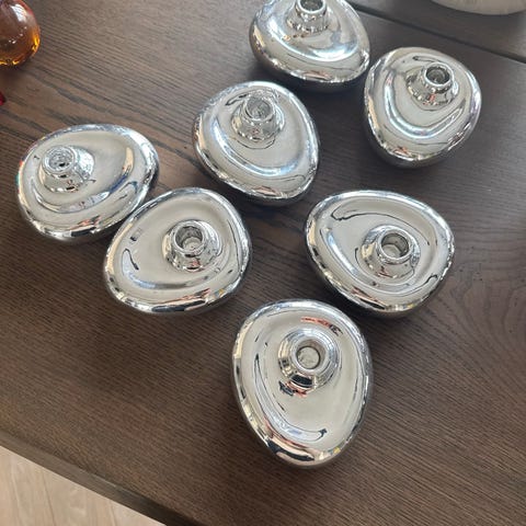 Smukt og stemningsfuldt sæt høje lysestager i metallisk sølv fra ILVA. Lysestagerne er i rigtig fin stand. De kommer fra et ikke-ryger hjem.