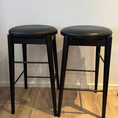 Mikado J153 barstol fra FDB er en klassisk barstol med sæde med bøgefiner og sort stel af massiv bøg med fodstøtte. Stolen er i et let design, og den kan passe til mange