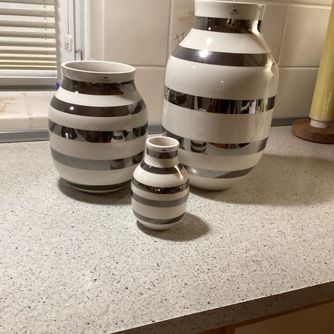 To stribede vaser i rød og hvid keramik