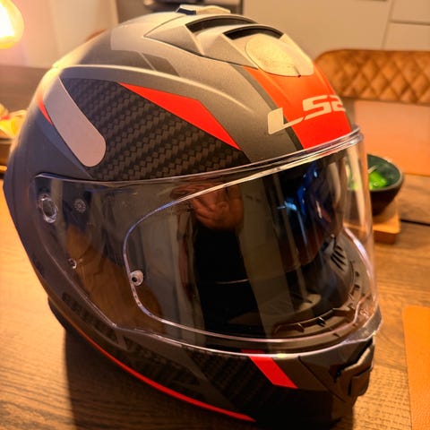 LS2 mchjelm xxxl i sort med grafiske detaljer. Hjelmen har pinlock indervisir og solbrille.