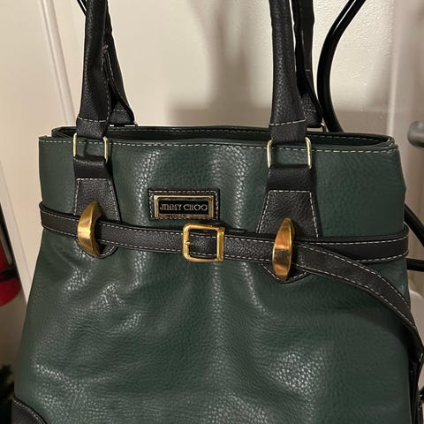 Skuldertaske, Jimmy Choo, andet materiale, Fremstår som ny, pæn, sort brun hånd og skulder taske med to lommer, to klik rum og stort rum. 40 cm i længden. Skulderrem kan tages af og justeres i længden.