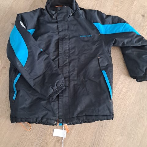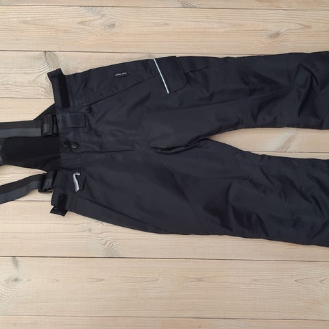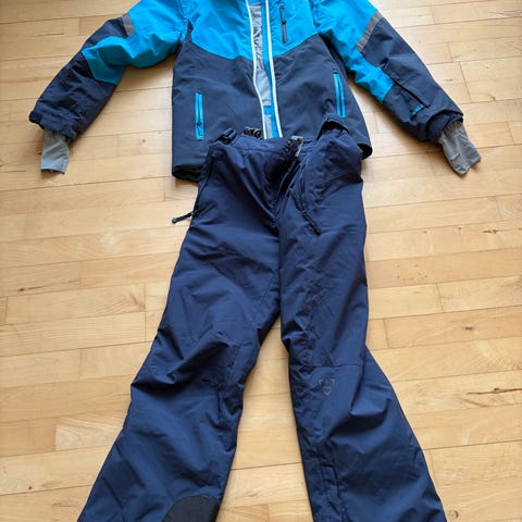 Fint, varmt sæt i sort med gråt bogstavmønster på jakken og grønne lynlåse. I meget fin stand, bortset fra slid med håndleddet og det ene bukseben. Ellers er bulserne stort set som nye. Der er ikke skrevet navn i. Se fotos. Varmt og godt sæt. Str. 152-158, 12 år. Sælges helst samlet. Ellers 175 for jakken og 175 for bukserne.