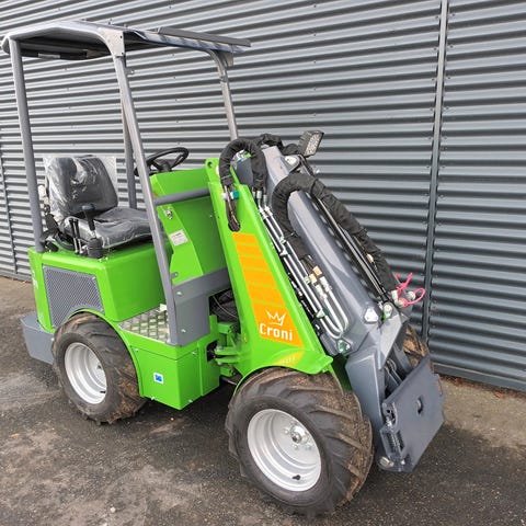 Fabriks ny Kubota RT 100-2 minilæsser til kampagne pris, lille og snild minilæsser med stor løfte evne, spær på aksler, ekstra vægt i bag, træk, hy redskabs fæste, 4 funktion i joystik, led arbejdslys, fem og bak i joystik, justerbar rat stamme, løfter en palle træpiller på 900 kg og kan køre med det
