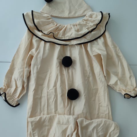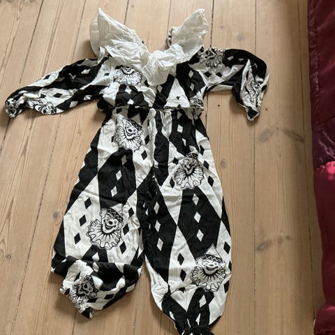 Fastelavnstøj, Klovnedragt (bluse, bukser, krave, næse, paryk og hat) atr. 5-6 år sælges samlet for 100 kr.
