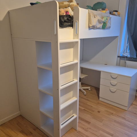 Rigtig fin køjeseng med skrive bord og indbygget tøjskab. 3 skuffer underskrivebordet