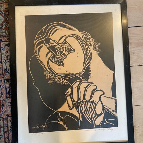Meget smukt gammelt Thorvald Petersen træsnit på japanpapir 25 x 27 cm. flot stand.