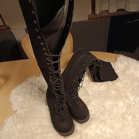 Skønne langskaftede støvler i en flot mørkegrå fin ruskind fra A Pair.