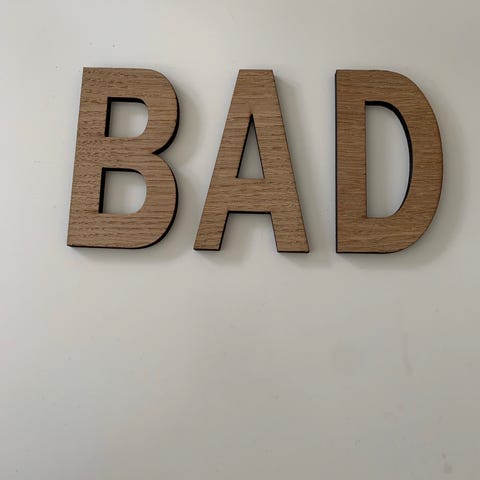 Blåt S i træ, hvidt i siderne. Højde 14 cm, 1 cm tyk.
