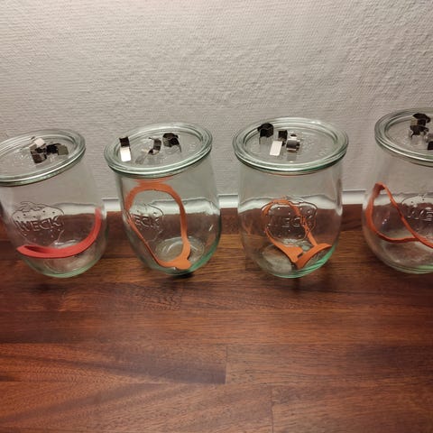 5 x Weckglas i forskellig str med låg sælges samlet for 70 kr.