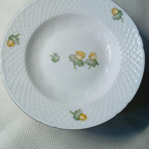Bing & Grøndahl Tallerken med Blå Blomst mønster i porcelæn.