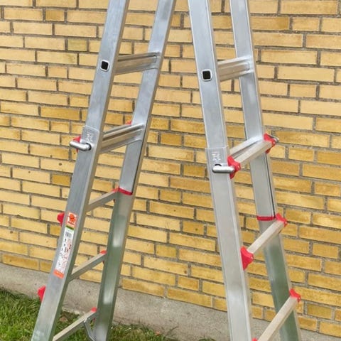 Udvendig bredde 35 cm (76 cm med stabilisator), Platformhøjde 0,95 m, Wienerstigehøjde 1,80 m, Udskudslængde 3,60 m, Funktion som enkelt- og wienerstige samt lille stillads og Skridsikker platform
