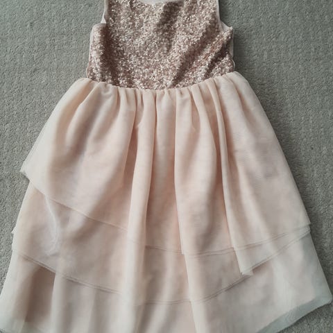 Kjolen er dekoreret med palietter og har et elegant design. Materialet og detaljerne gør den velegnet til særlige lejligheder for piger i denne aldersgruppe.