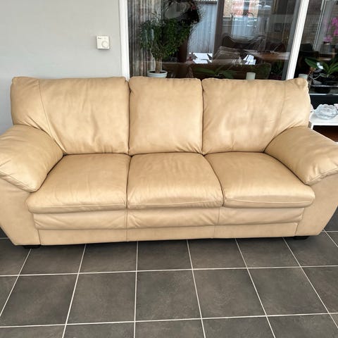 2+3 sofagruppe i læder, lysebrunt.