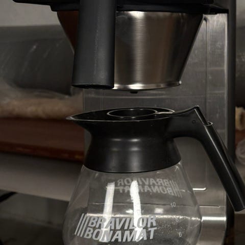 Den har to bryggestationer, fire glaskander og fire varmeplader.
