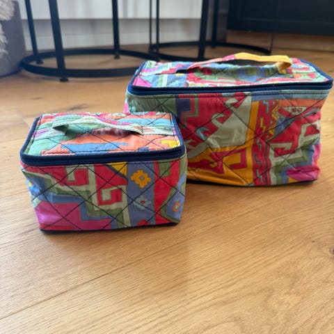 Helt ny - syper fin Ted Baker toilet/kosmetiktaske inklusive produkter(se billede). Tasken er i ceriserød satin. stadig med beskyttende plastik på metal dele. Alle produkter uanbrudte.