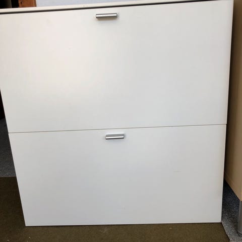 Skoskab med 5 hylder .Let rust i nederste højre hjørne,fungerer fejlfrit. H 168 cm B 50 cm D 15 cm