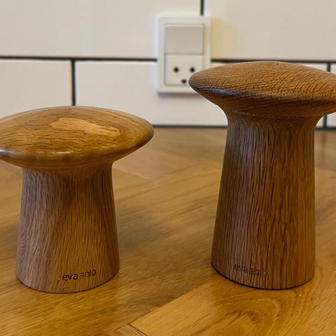 Meget smuk salt- og peberkværn lavet i træ og sort materiale.