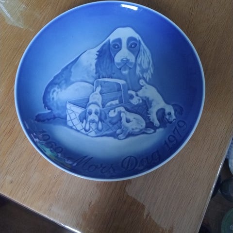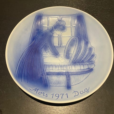 Desiree mors dag platte 1970 Porcelænstallerken Blå Hvid