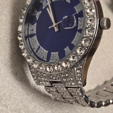 Flot stillet ur med pynt og gummi rem. Nyt, quatz, sælges for kun 200kr, kan også sendes med posten for +50kr