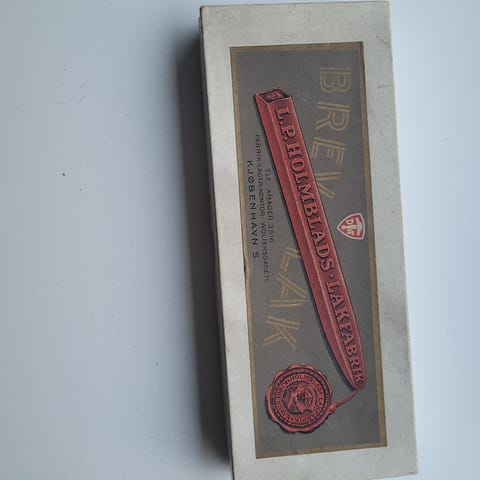 2 lakstænger og ca. 100 år gammelt stempel ("Aage Christensen København Aut. Varemægler")