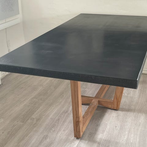 Matsort bordplade med fede stålben.