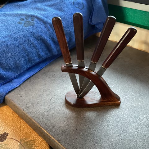 Retro smørkrøller i rustfrit stål med teak skafte