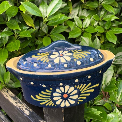 Ældre henrivende stegeso and krukke med låg, Ældre henrivende and, krukke med låg med masser af fine detaljer. Ælling duck bird fugl Opbevaring porcelænskrukke porcelæn