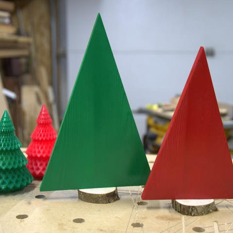 Håndlavede umalede juletræer klar til pyntning. Kan laves i forskellig højde. De viste er cirka 40 cm høje. Foden er af naturtræ. Den er nem at skrue af (se billede) for nem opbevaring eller udskiftning. Pris for 2 stk: 150,- (afhænger af størrelse)