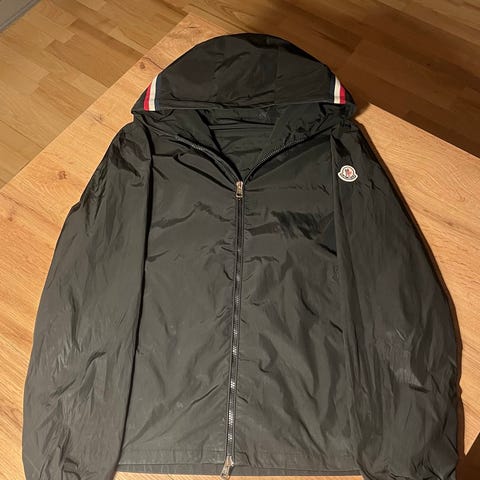 Moncler Jakke i sort farve, størrelse L til mænd. Jakken designet til udendørs brug. Den har flere lynlåslommer og Moncler-logo på ærmet og indersiden. God til vinteren der står str l men er lidt lille i størrelsen