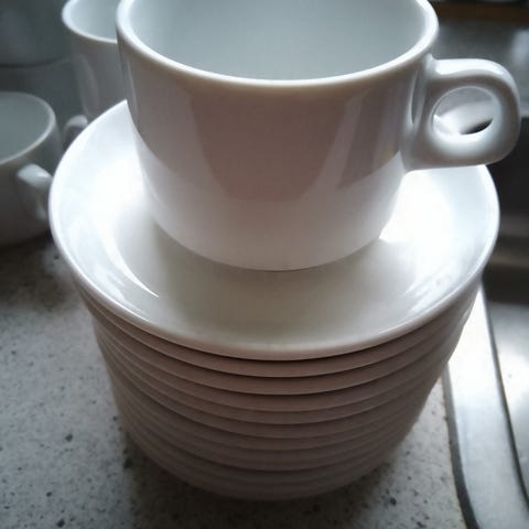7 stk thekopper med underkop, mrk Horisont, sælges kun samlet. Kan afhentes i Slangerup